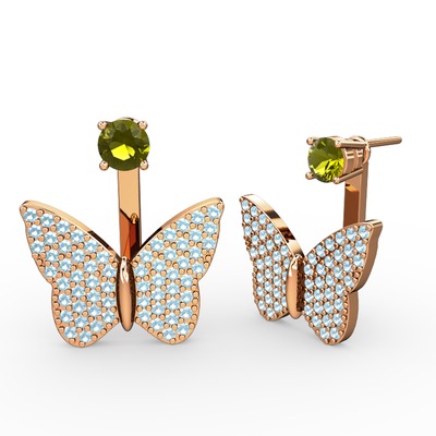 Peridot ve akuamarin 8 ayar rose altın küpe