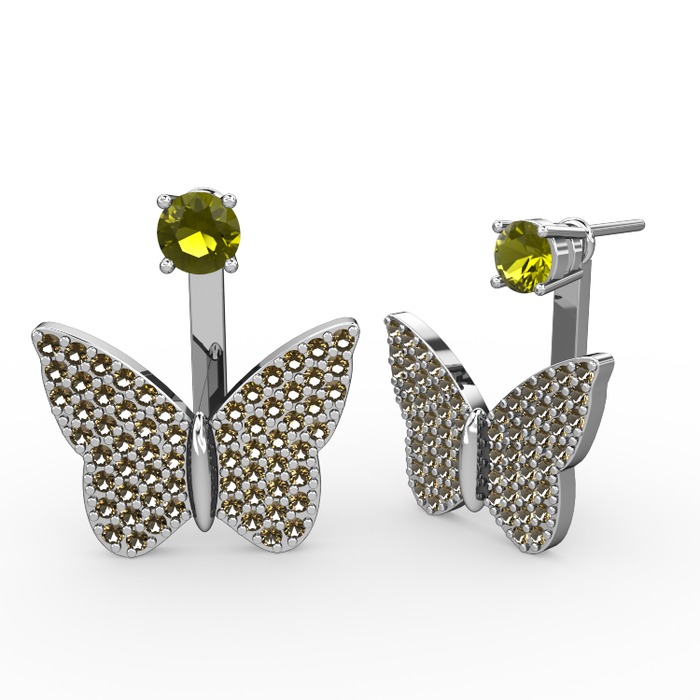 Peridot ve dumanlı kuvars 8 ayar beyaz altın küpe
