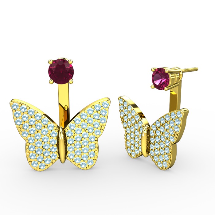 Rodolit garnet ve akuamarin 18 ayar altın küpe