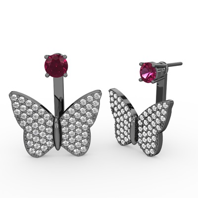 Rodolit garnet ve beyaz zirkon 925 ayar siyah rodyum kaplama gümüş küpe