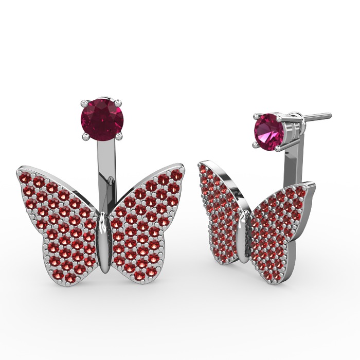 Rodolit garnet ve garnet 18 ayar beyaz altın küpe