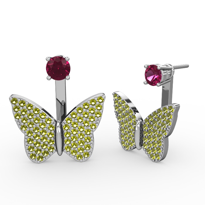 Rodolit garnet ve peridot 8 ayar beyaz altın küpe