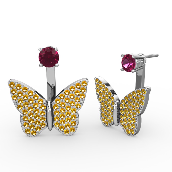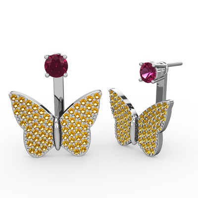 Rodolit garnet ve sitrin 14 ayar beyaz altın küpe
