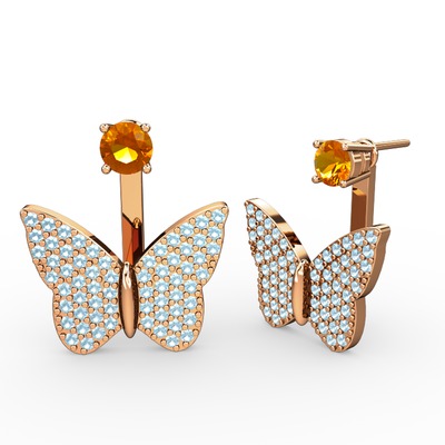 Sitrin ve akuamarin 925 ayar rose altın kaplama gümüş küpe