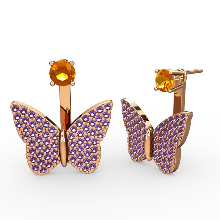 Sitrin ve ametist 14 ayar rose altın küpe