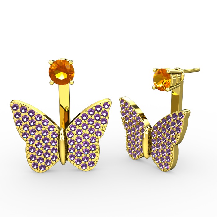Sitrin ve ametist 925 ayar altın kaplama gümüş küpe