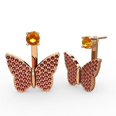 Sitrin ve garnet 925 ayar rose altın kaplama gümüş küpe