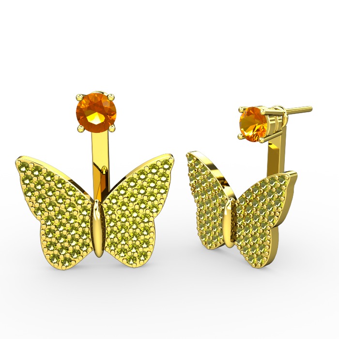 Sitrin ve peridot 925 ayar altın kaplama gümüş küpe