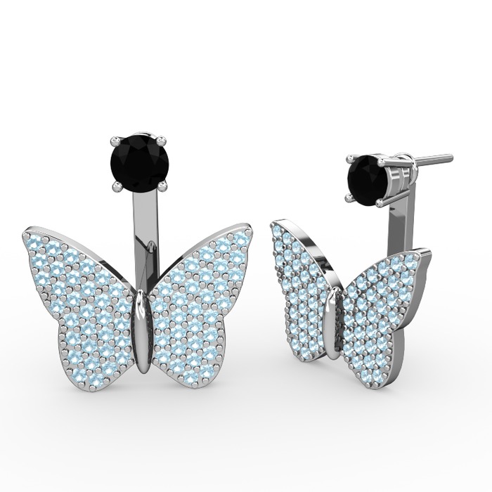 Siyah zirkon ve akuamarin 8 ayar beyaz altın küpe