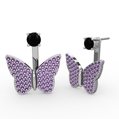Siyah zirkon ve ametist 925 ayar gümüş küpe