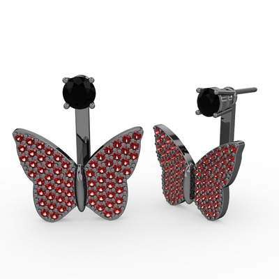 Siyah zirkon ve garnet 925 ayar siyah rodyum kaplama gümüş küpe