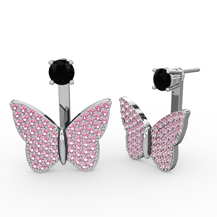 Siyah zirkon ve pembe kuvars 18 ayar beyaz altın küpe