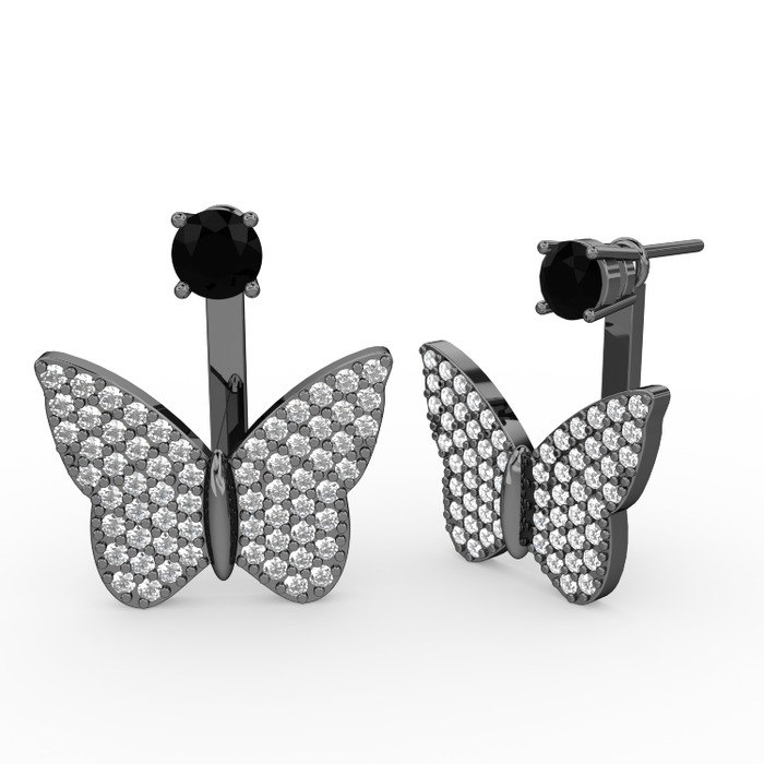 Siyah zirkon ve pırlanta 925 ayar siyah rodyum kaplama gümüş küpe (1.104 karat)
