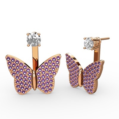 Swarovski ve ametist 925 ayar rose altın kaplama gümüş küpe