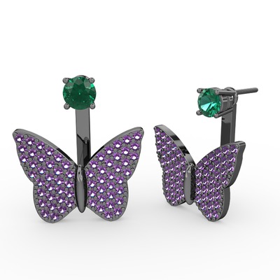 Yeşil kuvars ve ametist 925 ayar siyah rodyum kaplama gümüş küpe