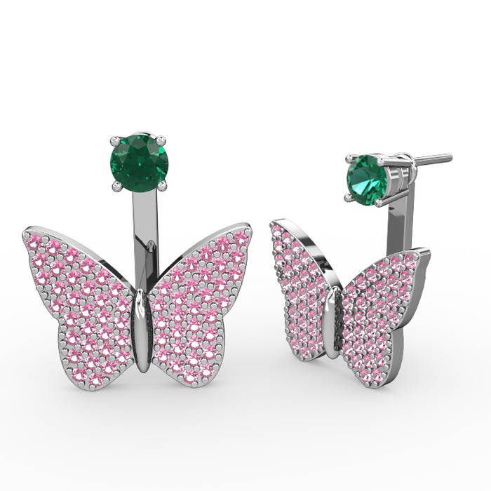 Yeşil kuvars ve pembe kuvars 14 ayar beyaz altın küpe
