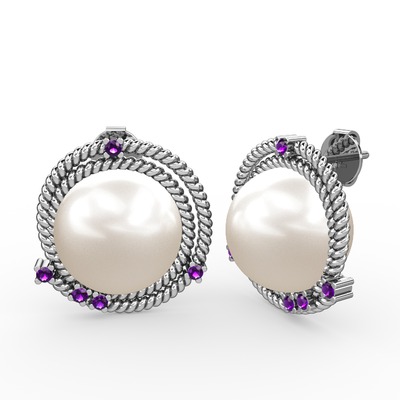 Inci ve ametist 925 ayar gümüş küpe