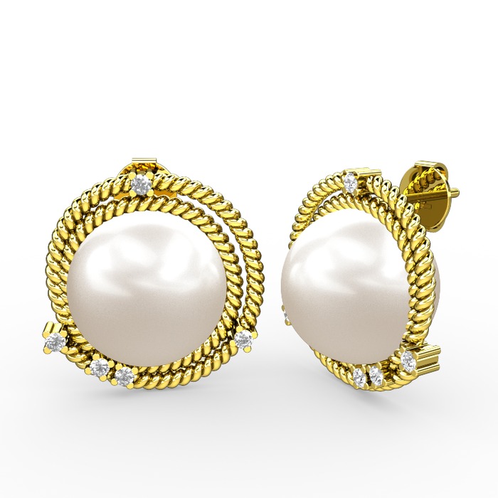 Inci ve beyaz zirkon 18 ayar altın küpe