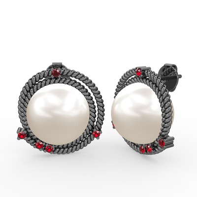 Inci ve garnet 925 ayar siyah rodyum kaplama gümüş küpe
