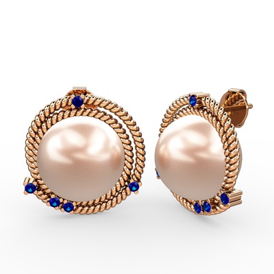 Pembe inci ve lab safir 18 ayar rose altın küpe