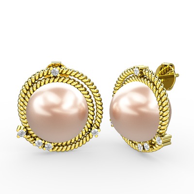 Pembe inci ve pırlanta 14 ayar altın küpe (0.15 karat)