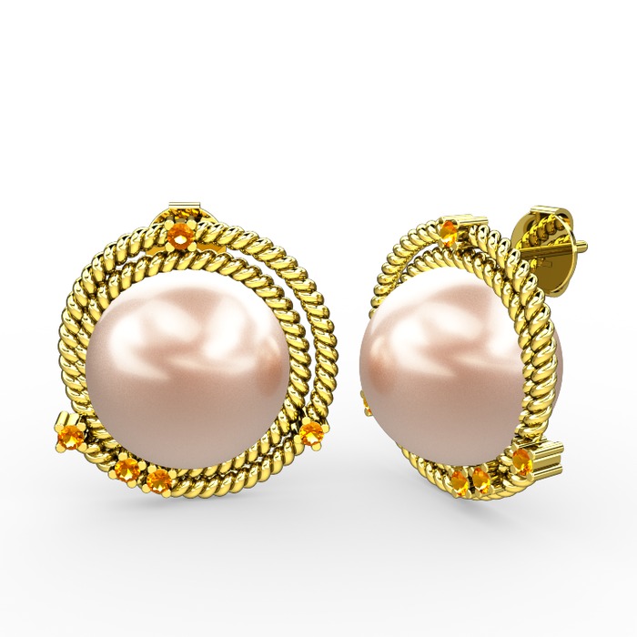 Pembe inci ve sitrin 14 ayar altın küpe