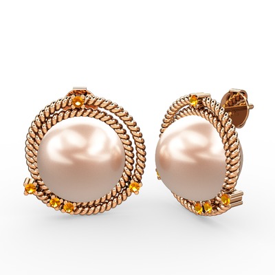 Pembe inci ve sitrin 18 ayar rose altın küpe