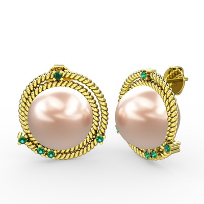 Pembe inci ve yeşil kuvars 925 ayar altın kaplama gümüş küpe