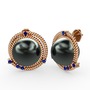 Siyah inci ve lab safir 14 ayar rose altın küpe