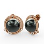 Siyah inci ve pırlanta 8 ayar rose altın küpe (0.15 karat)