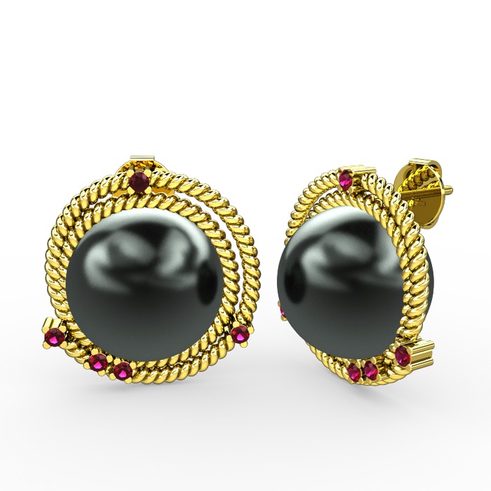 Siyah inci ve rodolit garnet 925 ayar altın kaplama gümüş küpe