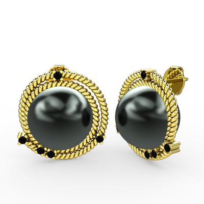 Siyah inci ve siyah zirkon 14 ayar altın küpe