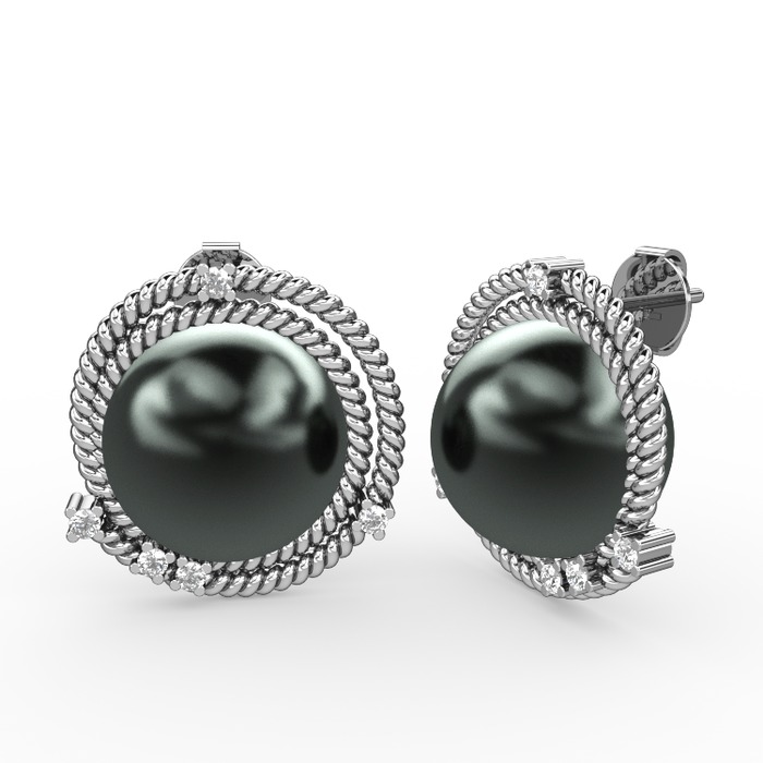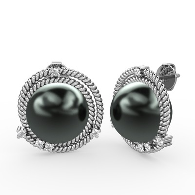 Siyah inci ve swarovski 14 ayar beyaz altın küpe