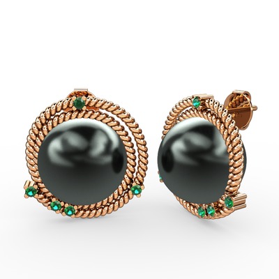 Siyah inci ve yeşil kuvars 925 ayar rose altın kaplama gümüş küpe