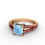 Akuamarin ve garnet 14 ayar rose altın yüzük