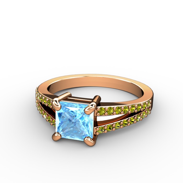 Akuamarin ve peridot 14 ayar rose altın yüzük