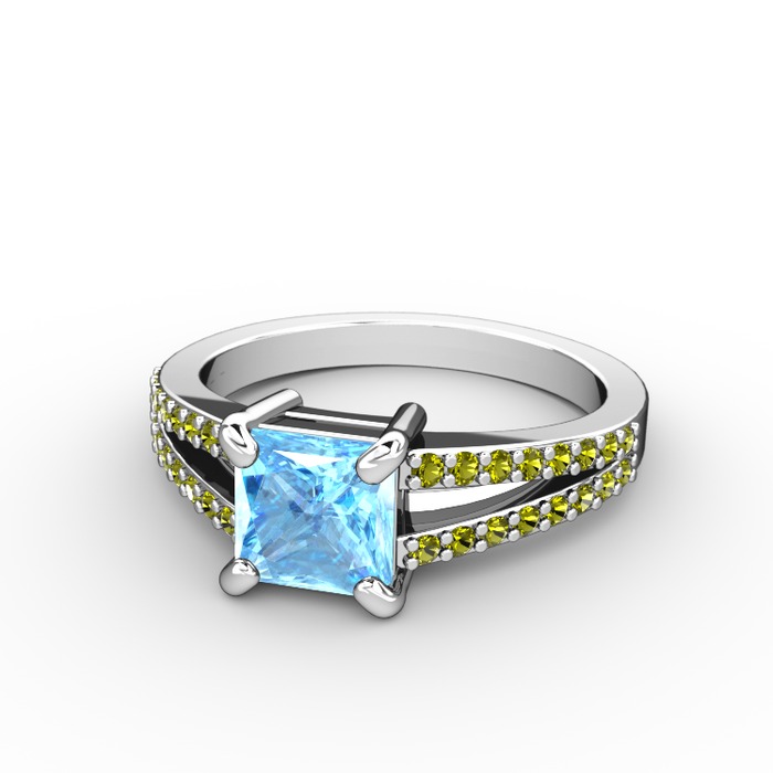Akuamarin ve peridot 18 ayar beyaz altın yüzük