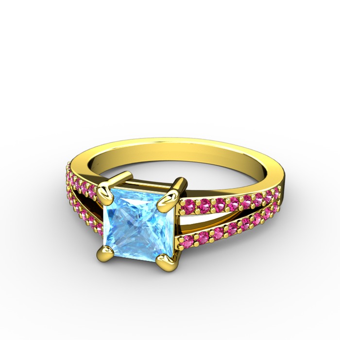 Akuamarin ve rodolit garnet 14 ayar altın yüzük