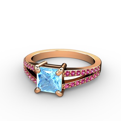 Akuamarin ve rodolit garnet 14 ayar rose altın yüzük