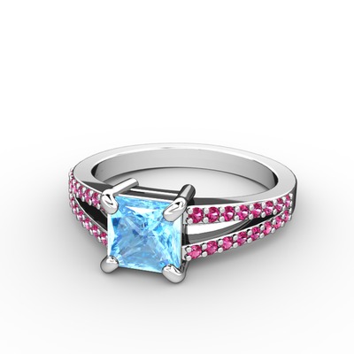 Akuamarin ve rodolit garnet 18 ayar beyaz altın yüzük