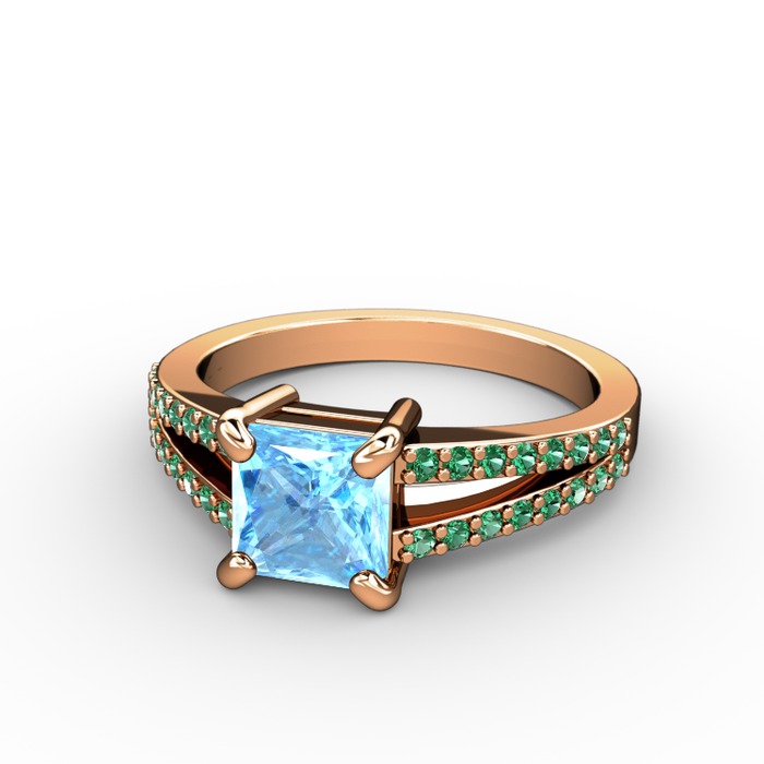Akuamarin ve yeşil kuvars 14 ayar rose altın yüzük