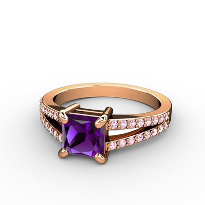 Ametist ve pembe kuvars 14 ayar rose altın yüzük