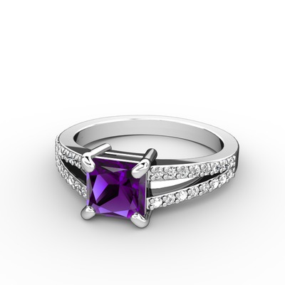 Ametist ve pırlanta 18 ayar beyaz altın yüzük (0.352 karat)