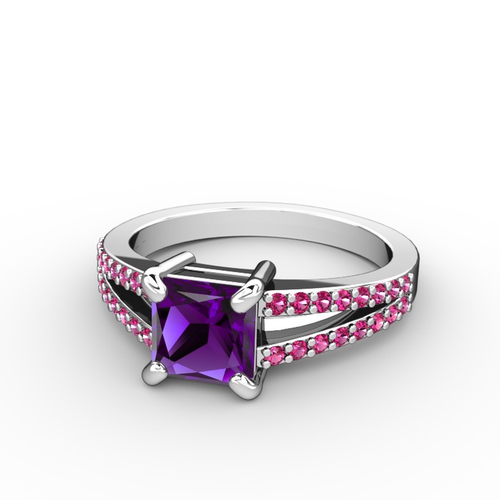 Ametist ve rodolit garnet 18 ayar beyaz altın yüzük