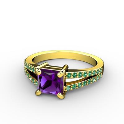 Ametist ve yeşil kuvars 8 ayar altın yüzük