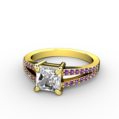 Beyaz zirkon ve ametist 8 ayar altın yüzük