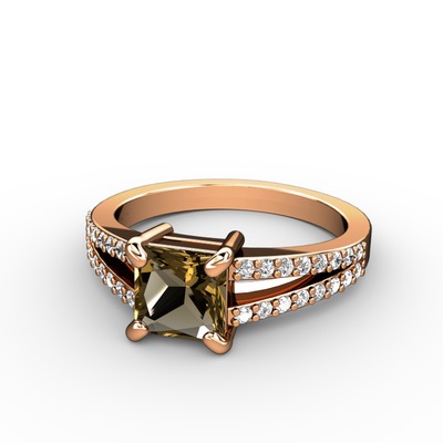 Dumanlı kuvars ve beyaz zirkon 18 ayar rose altın yüzük