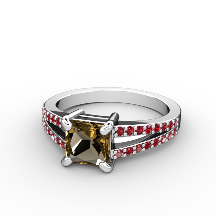 Dumanlı kuvars ve garnet 925 ayar gümüş yüzük