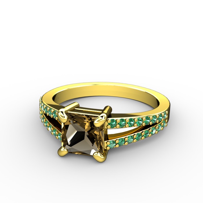 Dumanlı kuvars ve yeşil kuvars 8 ayar altın yüzük
