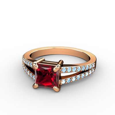 Garnet ve akuamarin 14 ayar rose altın yüzük